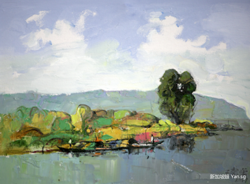 此外,王韶悌清新、明快、亮丽的画风,在技法表现上还部分受益于法国印象派的“光色”。法国现实主义“让艺术面向当代生活”的思想,令王韶悌走出画室,深入原野、乡村、山林,把对自然清新生动的感观放到首位,在深入观察的基础之上,用印象画派的“光色”去艺术升华云南民族的原生态。