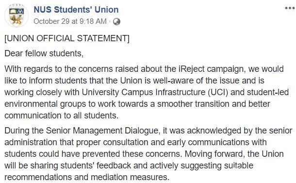 无吸管运动产生这么大的反响,是大家都没预料到的。国大学生会在Facebook上做出回应表示,他们会努力跟大家沟通,做出合理的改进措施。