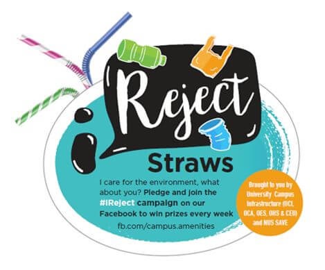 10月16日,新加坡国立大学发起环保运动“iReject”,宣布从10月17日起,全校禁止使用塑料吸管。