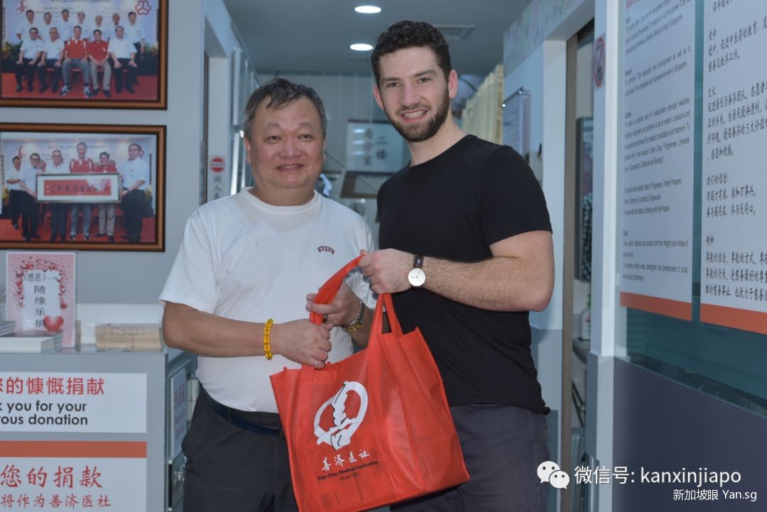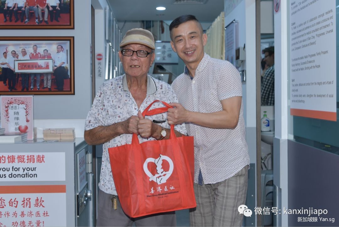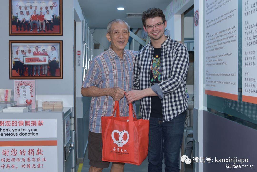 除了带来音乐,高韶青还为老人发放爱心礼物。