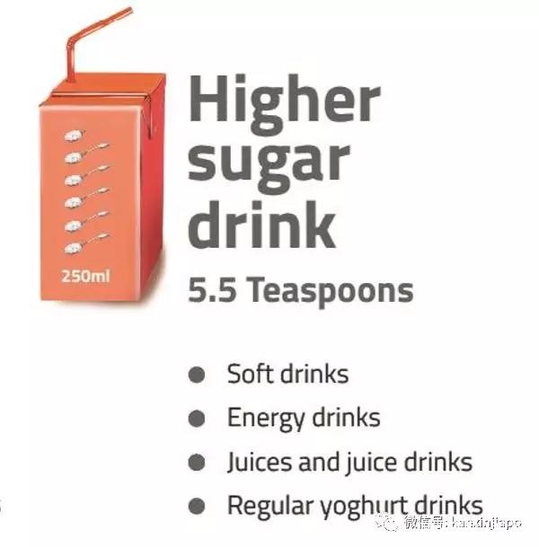 根据新加坡保健促进局的规定,如果250毫升的饮料含5.5茶匙以上的糖分,便归为高糖饮料~汽水、能量饮料、鲜榨果汁、酸奶等饮料通通中招…….