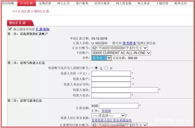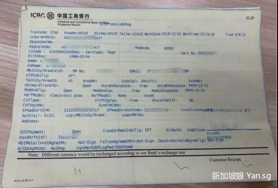 4、500新币现金(这一点很好,新加坡很多银行都会要求最低存额,都在2000—3000新币左右,而且每月余额都要大于这一数字;而工行没有最低存额的要求,只需开卡时存入500新币)