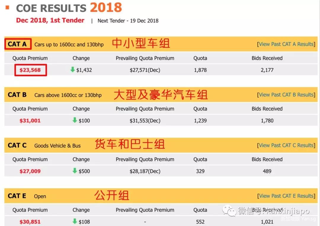 新加坡陆交局今天公布了12月第一轮拥车证竞标结果,中小型车组报23568新币,降至8年来的最低!
