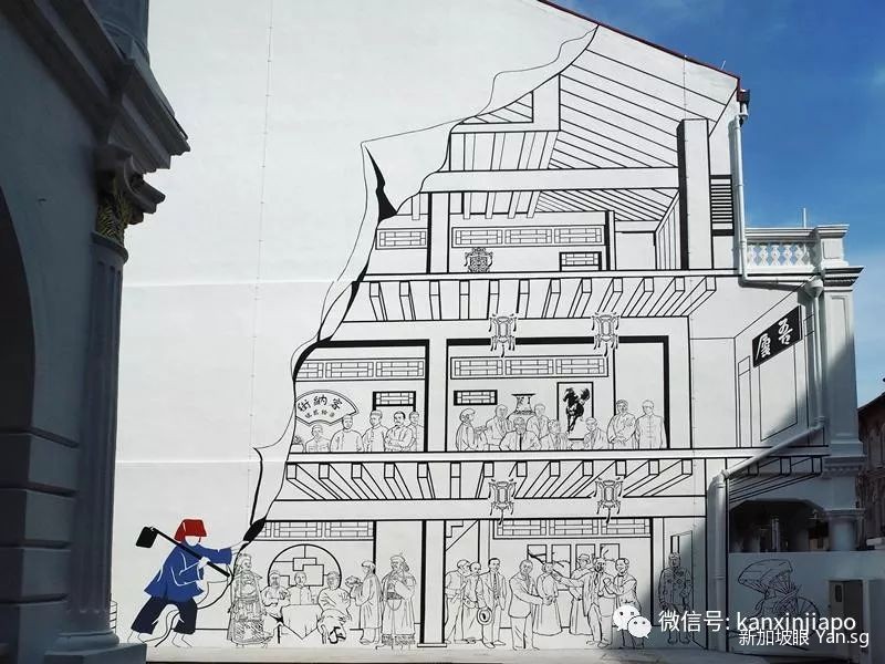 建筑外墙绘制上壁画,绘有陈延谦、邱国瓦、林文庆、李光前等先驱人物,再现百年吾庐。