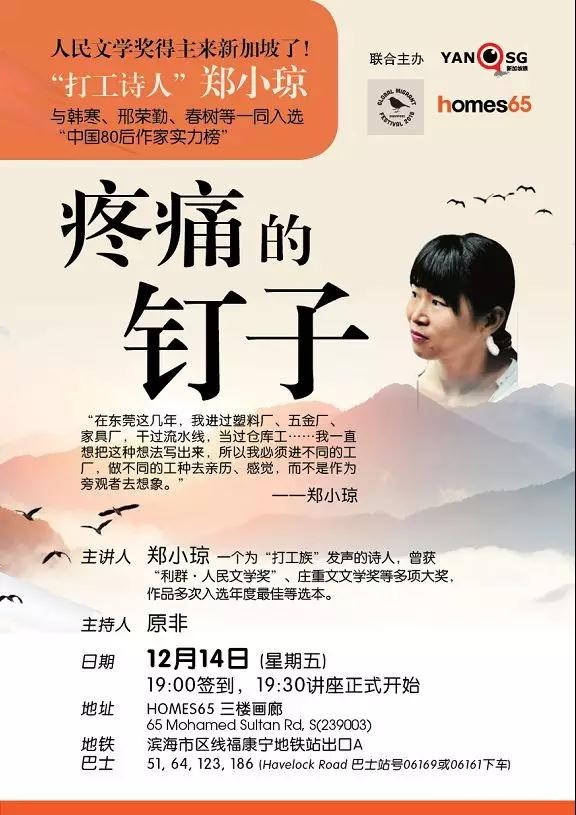郑小琼将会为新加坡眼读者带来一场精彩见面会,文艺青年们不要错过哦!