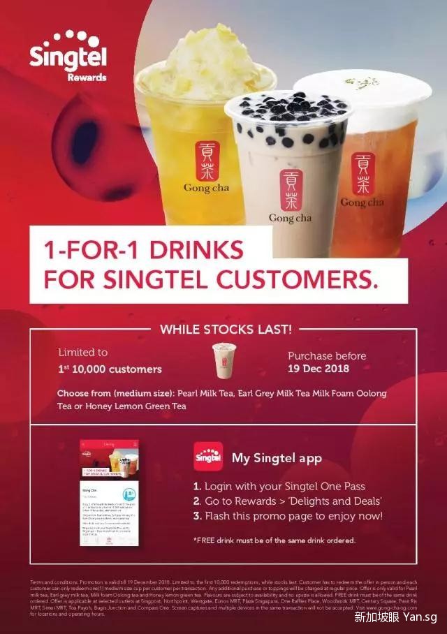 使用Singtel APP,贡茶买一送一!