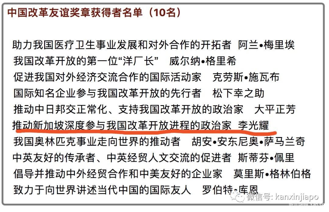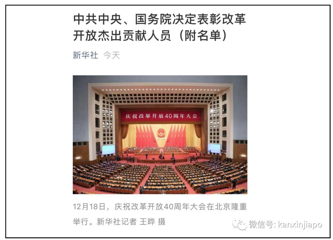 今天(12月18日),中国庆祝改革开放40周年,授予100名中国人“改革先锋”之称号,并向10位国际友人颁授“中国改革友谊奖章”,其中一名便是新加坡建国总理李光耀。