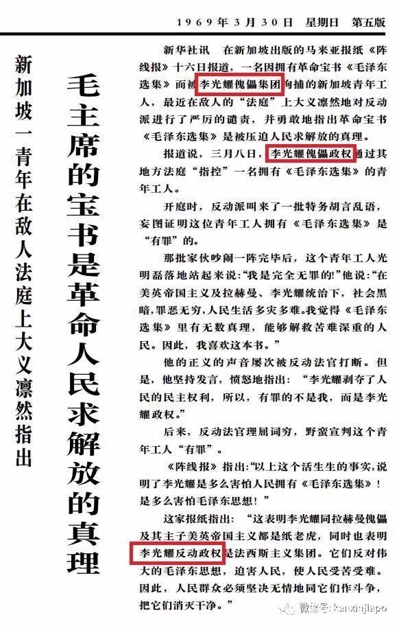 同时,在1970年之前,中国并不承认一个独立的新加坡的存在,而把它称为“马来亚的一部分”,而央媒也经常指责“新加坡当局”“武装镇压新加坡人民的犯罪行为”,“进行反华、反人民的罪恶活动”,李光耀也经常被称为“帝国主义者的傀儡政权”、“英帝国主义及其走狗”、“反动政权”。