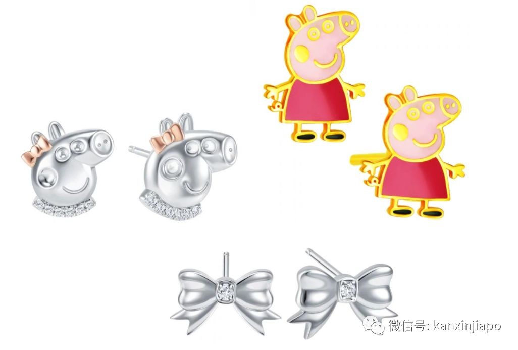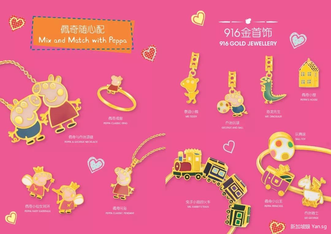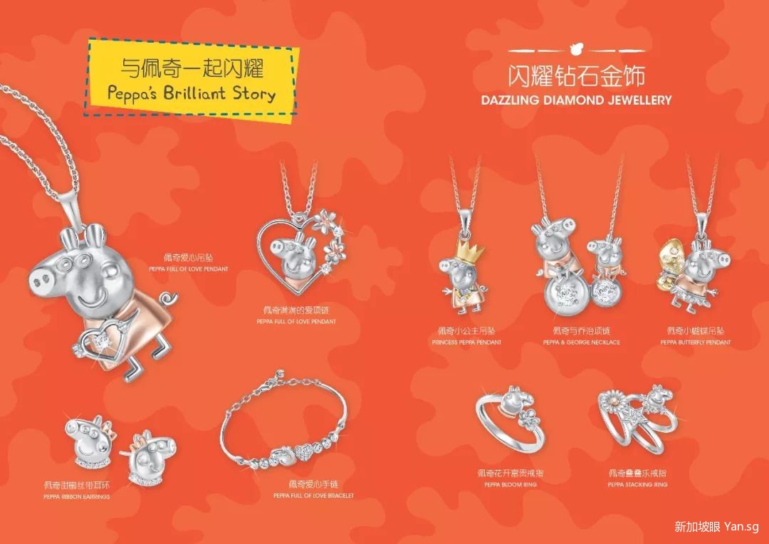 这些珠宝来自新加坡本地品牌MoneyMax Jewellery,他们是新加坡首个,也是目前唯一一个引进小猪佩奇(Peppa Pig)商标的珠宝品牌!