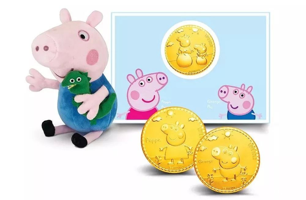 套装一:2枚999足金小猪佩奇纪念币+小猪乔治毛绒公仔