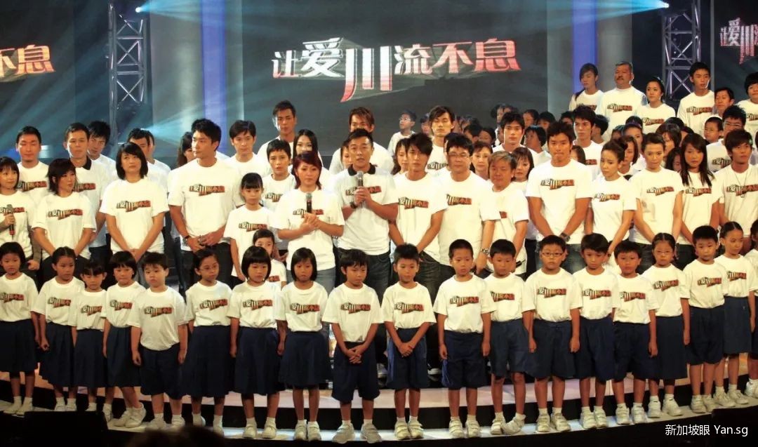 ▲2008 年,“5.12 汶川地震”发生后,卓顺发和其他爱心人士、各界社团、企业纷纷伸出援助之手,举办电视筹款“让爱川流不息”活动,为灾区人民筹款