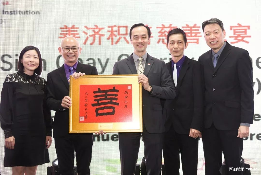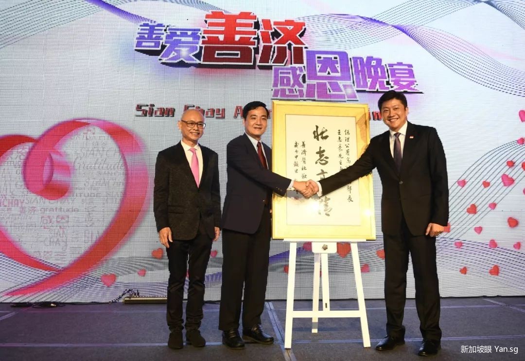▲新加坡教育部长黄志明,善济医社顾问、高级政务部长王志豪共同出席“善爱善济”感恩晚宴