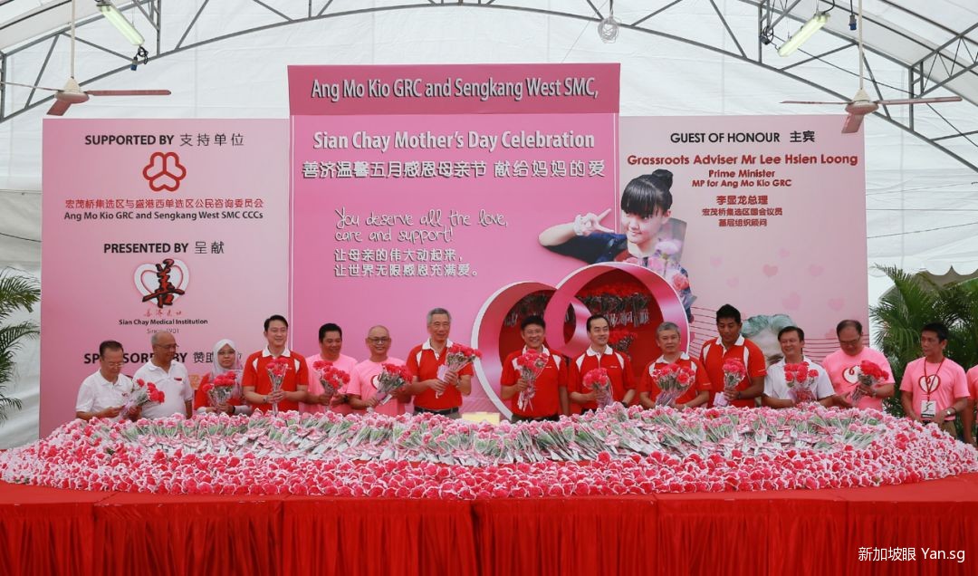 李显龙在面簿(Facebook)上发贴文,祝愿天下母亲和准妈妈“母亲节快乐”。他写道:“今天上午, 我与宏茂桥市政理事会议员和义工们一起向盛港南社区的母亲和居民分发一万朵粉红色康乃馨,很开心看到很多母亲和他们的家人享受他们温馨美好的星期天。感谢善济医社奉献的爱心花朵。善济医社是一个社会公益慈善机构,一百多年来, 不分种族、宗教、国籍,一视同仁为社会大众提供免费的中医看诊服务。我也感谢宏茂桥集选区和盛港西公民咨询委员会支持这个伟大的母爱项目,你们今天给很多人带来了欢笑”。
