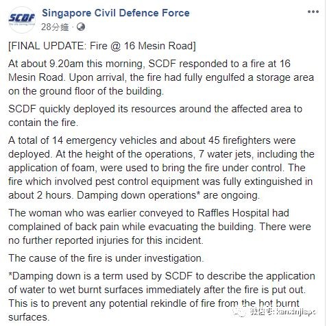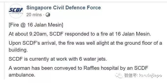 随后新加坡民防部队(SCDF)在Facebook上表示: