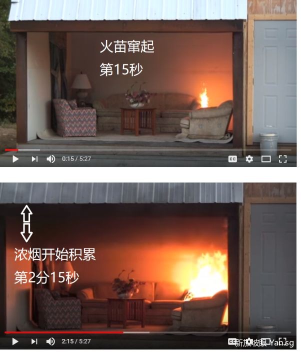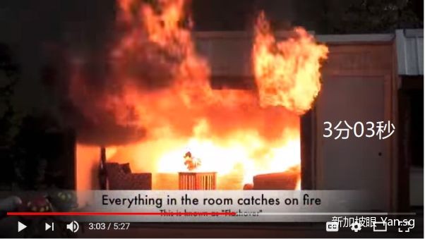 研究显示,从火苗窜起到闪燃形成,平均需时8分钟(上面这个视频是模拟最理想条件下的状态,所以3分钟就形成了闪燃)。在闪燃形成之前,生命财产或还有挽回的机会,因此消防部门都尽可能在8分钟内抵达。