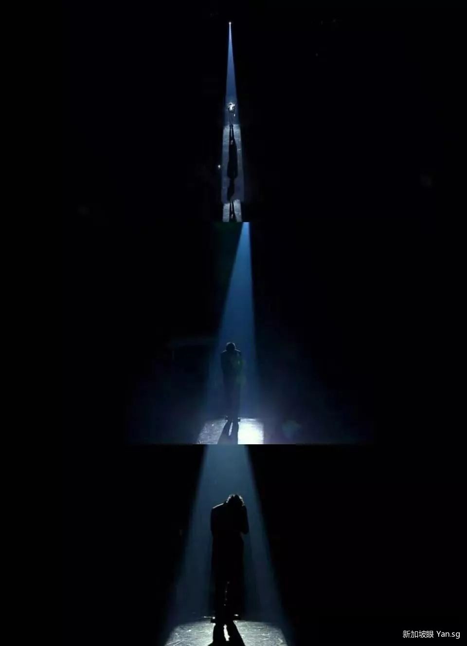 那场,他穿着黑色燕尾服站在台中央,唱到情深处,寂静无声,一束灯光下,只看到他颤抖的身影……
