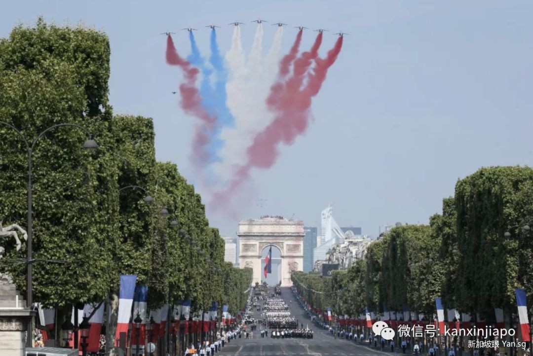 游行还首次邀请位于法国西南部的新加坡共和国空军(RSAF)特遣队。本次国庆阅兵,由法国与新加坡部队共同完成。
