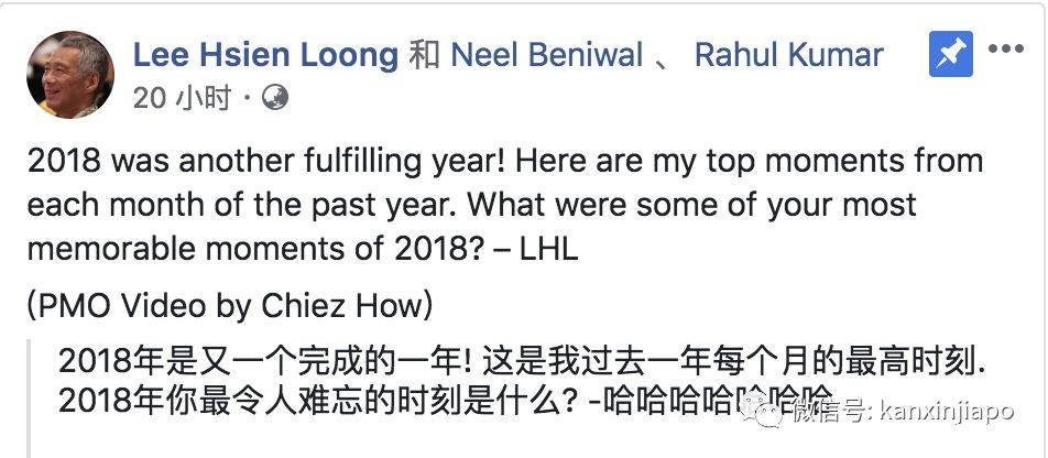 李显龙总理在2018年大盘点后,写道“2018是充实的一年,让我们展望光明的2019年”。同时也在今天下午发表了2019年新年致辞。
