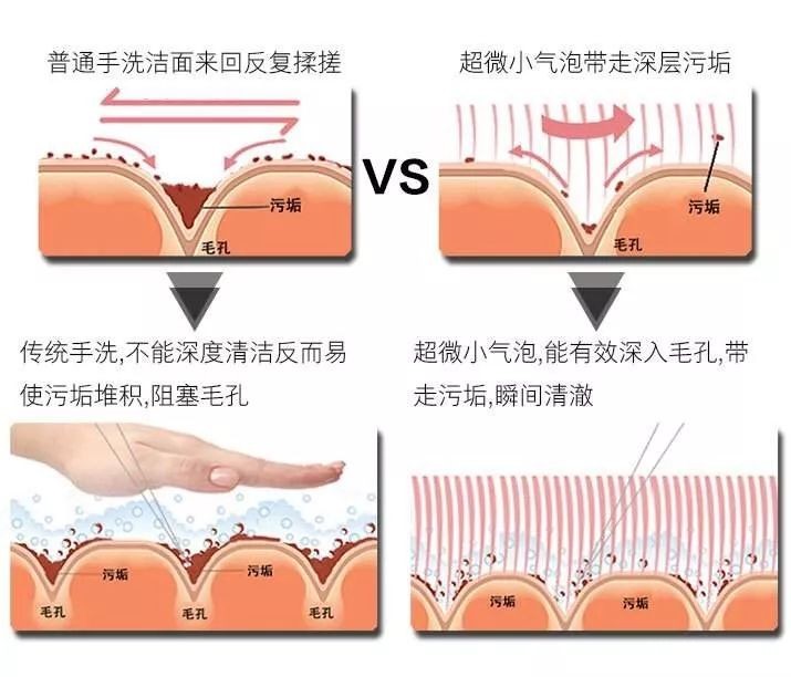 新加坡气候炎热潮湿,一出汗护肤品、化妆品阻塞在毛孔里成了人们面临的最大皮肤问题之一。传统手洗反复揉搓,不能深度清洁,反而更易使污垢挤压堆积,进入皮肤深层。