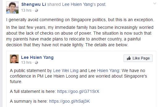 去年6月14日,李家老二李玮玲和老三李显扬突然在社交媒体上发文,称他们对现任总理(也就是他们的大哥李显龙),彻底失去了信心,将家族内部矛盾暴露在公众面前。