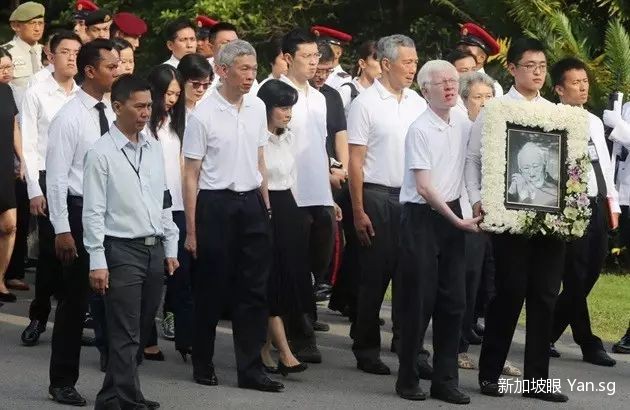 ▲(手捧李光耀遗像的分别是李毅鹏和李桓武)