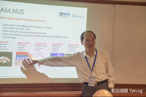 新加坡国立大学材料科学与工程系副主任Ding Jun教授现场演讲,题目为“3D printing of ceramic materials and their potential applications in biomedical sector”,与来自上海的临床及生物材料专家探讨技术产业化。
