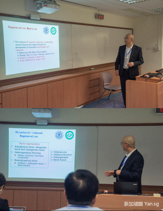 上海交通大学附属上海第六人民医院运动医学科主任赵金忠教授现场演讲,题目为“Prospect of regenerative sports medicine”,与新加坡国立大学及新加坡科技局的教授专家就高性能材料在运动医学中的应用展开了热烈讨论。