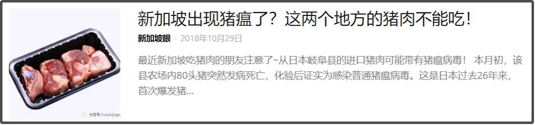 (新加坡出现猪瘟了?这两个地方的猪肉不能吃!2018年10月29日)
