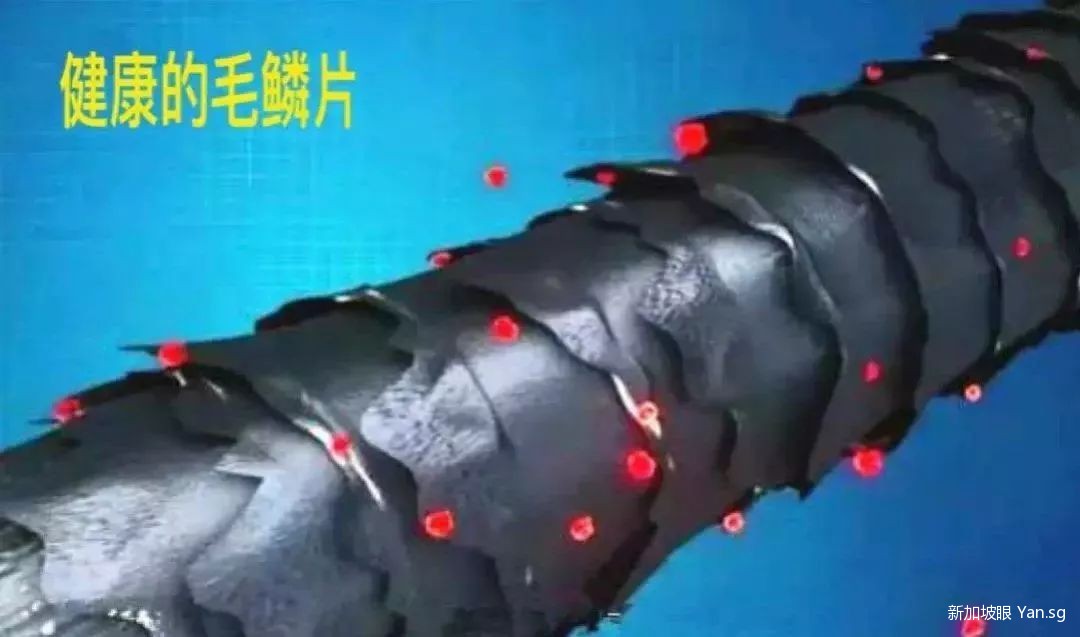 头发被放大1000倍,表面会有很多像鱼鳞一样的鳞片,那个就是【毛鳞片】,如下图!