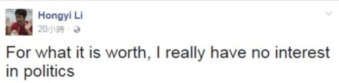 而李显龙的儿子李鸿毅,面对叔叔的指责,也发脸书回应“不管你们信不信,我真的对政治没有兴趣
