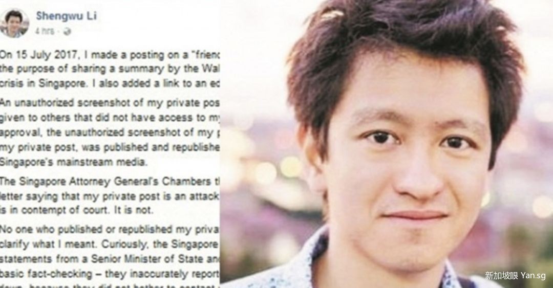李显扬的儿子李绳武发文力挺父亲,转脸书评论,称新加坡政府非常“好争讼”(litigious),而且新加坡法庭制度也很“温顺”。新加坡高庭因此对李绳武展开藐视法庭的诉讼。