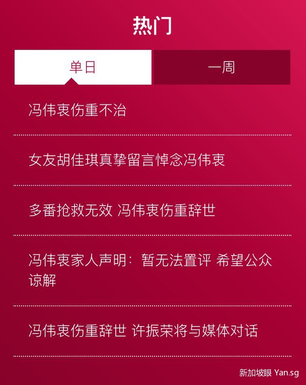 不光是新加坡,他身亡的消息直接冲上了微博热搜!
