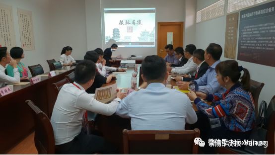晋江晋商发展促进会会长洪学谋(左二)向访问团介绍该会的重要活动