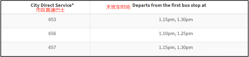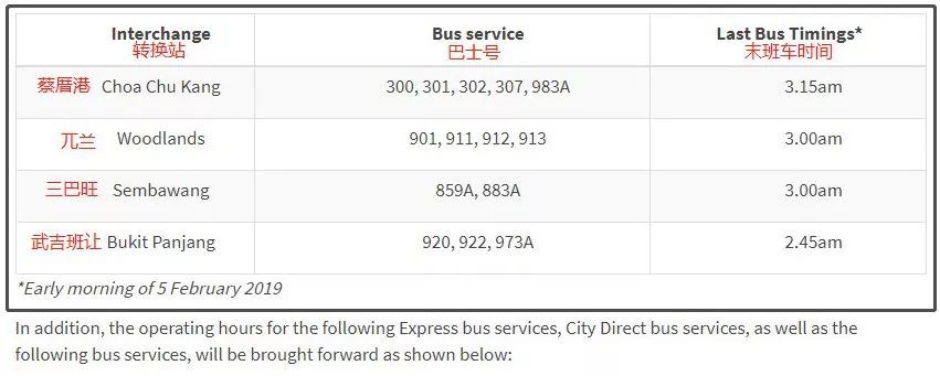 从蔡厝港发车的300、301、302、307、983A号巴士,将在凌晨3点15分发车。