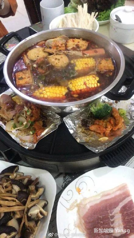 Qian倩-因你而爱:在家和朋友同事一起吃烤肉火锅~~第一个在新加坡的春节~