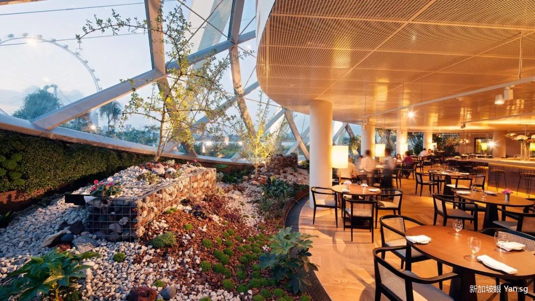 位于滨海湾花园内部的Pollen,被橄榄树、草木和植被所覆盖,边吃东西边能闻到淡淡的薰衣草和迷迭香的甜味。还有什么能比在花海里用餐更浪漫的吗?