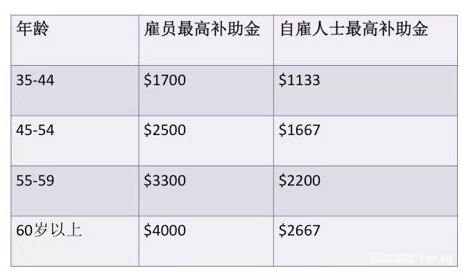 政府将在2020年调高就业入息补助金的收入顶限,从2000新币增加到2300新币。每年最高补助金也按年龄增加,60岁以上,月入低于1200新币的员工可获得高达4000新币的补助金。