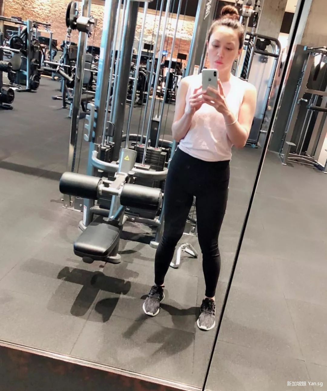 不仅颜值保持在巅峰长达20年,郭妃丽的身材也杠杠的~ 健身房里自拍一下,不仅没有一丝赘肉,胳膊上还能看到肌肉的线条!