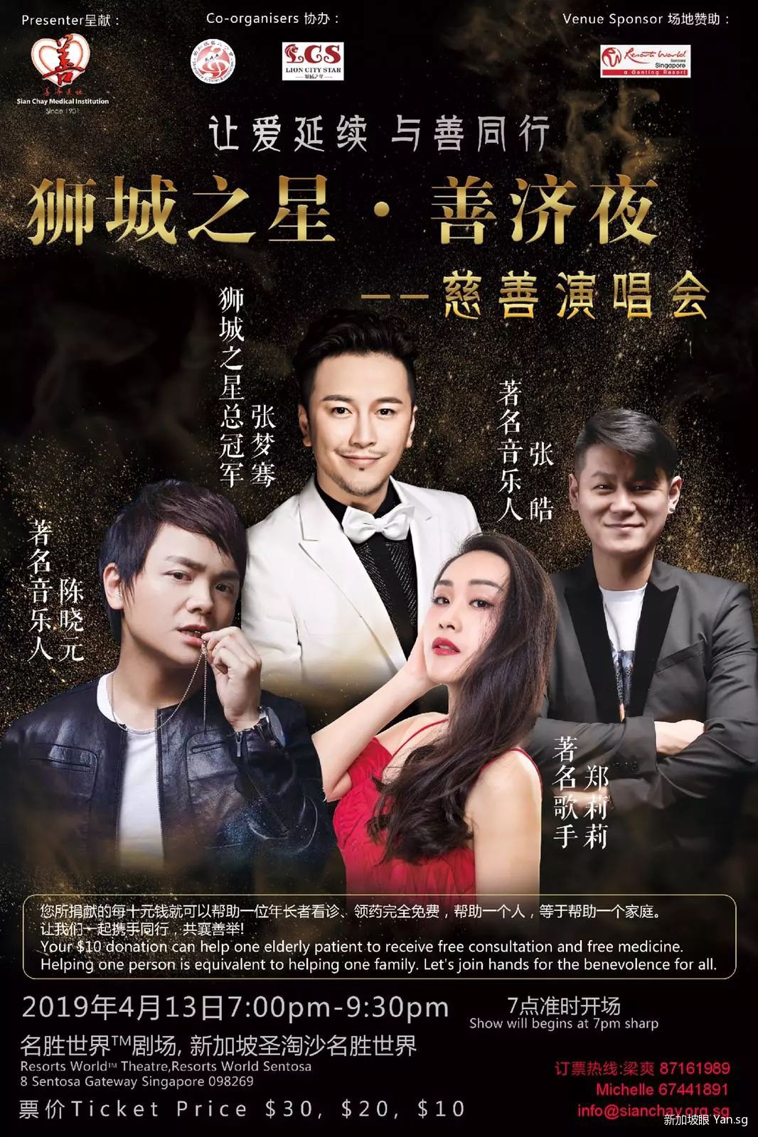 在圣淘沙该如何度过一个充满艺术气息的夜晚?4月13日(星期六)晚7点半,你便可以在“狮城之星.善济夜”慈善演唱会亲身体验一把了!