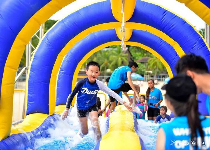 带上你的孩子们来尽情享受充气城堡的乐趣,让他们尽情在海滩上奔跑,蹦跳,攀爬和弹跳。