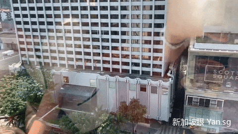 君悦酒店隔壁的“小矮子”Scotts Square表示很委屈了,乌漆嘛黑的烟一半飘向了空中,一半就盖在了它的脑袋上……