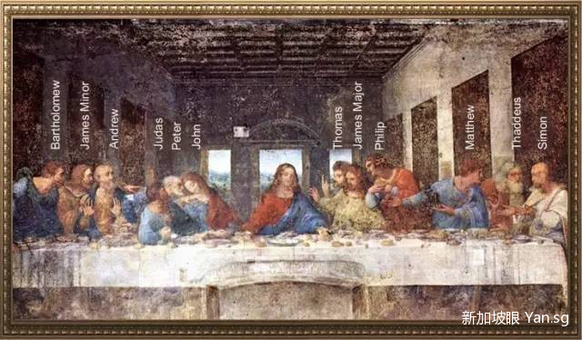 ▲达芬奇名画《最后的晚餐》,描绘的就是耶稣上十架受难的前夕,在和他的十二门徒共进最后晚餐时的场景。