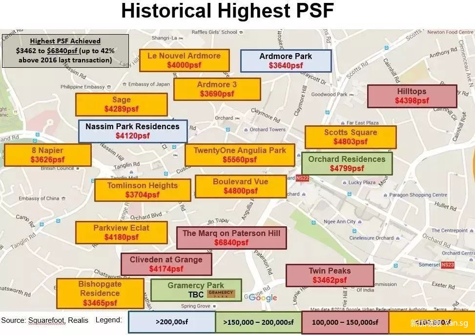 乌节路附近新盘豪宅均价都在3000psf以上,高出30%以上。