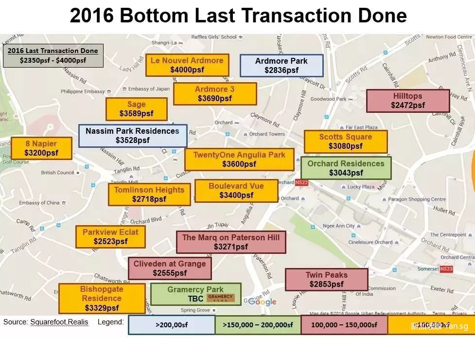 例如:99年的OUE Twin Peaks, 尾盘都成交3000psf以上,永久公寓 格美华庭(Gramercy Park), 银峰(New Futura),Boulevard 88 都成交到3200psf以上。而在2013-2014高峰时期,很多永久豪宅在是4000psf以上,如下图所示!