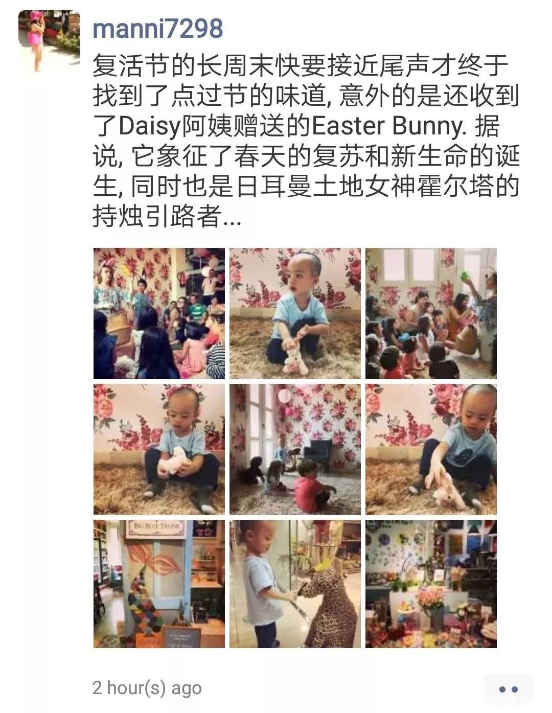 ▲孩子听得津津有味,不忘手里拽着那只Easter Bunny