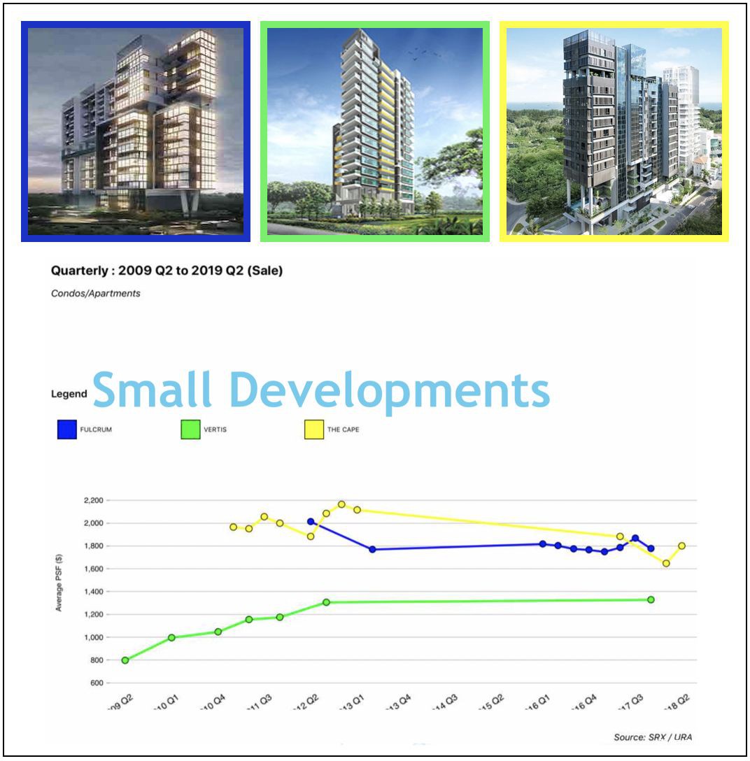 开发商开盘需要在短期销售大量房源,通常都会以最优惠的价格吸引首批买家。在消化库存的过程中,每次达到一个关键的销售目标,就会慢慢涨价。统计发现,新加坡新楼盘,开盘到交房的这3-4年时间,通常会有30%~40%的增幅。所以开盘投资,交房时直接新房卖掉套现,是一个成功率相对很高的投资策略!(当然也有特例和新盘陷进)新盘的”估值”不受银行限制,一般买主都可以按照开发商的价格贷款到75%。 而二手房的估值往往受到一些低单价户型的影响,导致买主也不愿意出合理的价格,价格常常停滞。2 大盘 vs 小盘,哪个增值潜力大?