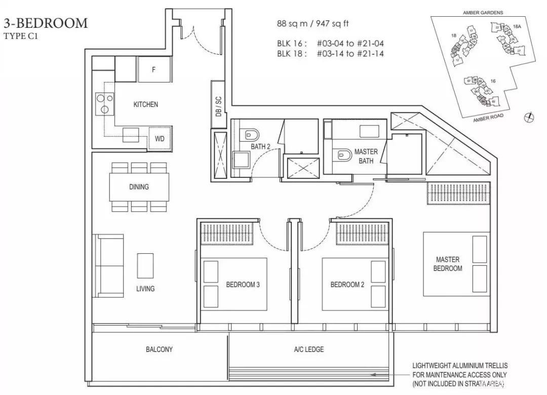 由此可见,相同户型,”新盘的价格” 竟然还稍稍低于”二手盘的价格” – 新加坡的新盘开盘时价格最优! Amber Park (安珀园)堪称东部绝版的永久产权大楼盘。所以,把我开盘第一天,不要错过”进场”的好时机!户型介绍紧凑型小户型,适合投资 1房+书房A1 面积:463sqf