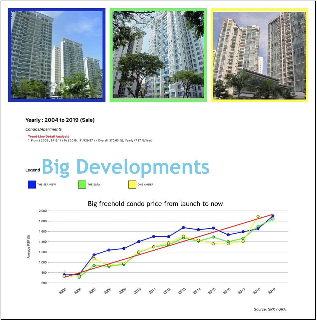“大楼盘”与”小楼盘”相比,占地面积比较大,有丰富公寓设施的大楼盘,一般增值潜力大于独栋的小楼盘!大楼盘在转售市场更受欢迎,因为居住环境好,设施齐全,附加价值高2004至2019年