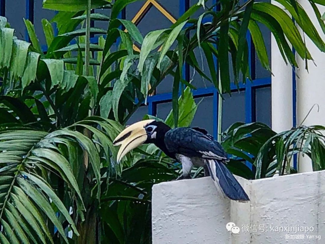 濒危鸟类——冠斑犀鸟,在中学校园闲庭信步~