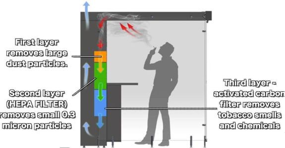 这个吸烟舱可不是普通的吸烟室,它设有多个过滤层,不仅能保护非吸烟者和小孩不会吸入二手烟,同时还能改善建筑物周围的空气质量。